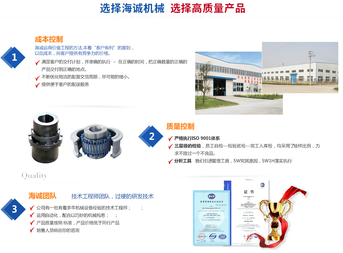 鎮江海誠機械制造有限公司 開辦于1991年,是開發 聯軸器 、 萬向聯軸器 、 鼓形齒式聯軸器 、 膜片聯軸器 的企業。歷經二十多年的發展,已成為服務于鋼鐵冶金、石油、礦山、化工、生物、制藥等行業的大型企業集團,為客戶設計、制造各種非標產品、設備。 鎮江海誠機械制造有限公司總部位于中國傳動機械產業化基地之江蘇鎮江,鎮江海誠機械制造有限公司有總資產8000多萬元。鎮江海誠機械制造有限公司總占地面積...